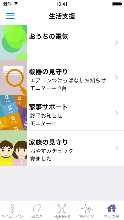 生活支援のトップページでは、次のサービスの現在の状況を表示します。