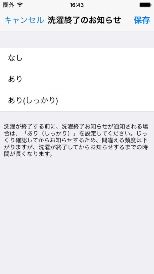 洗濯機終了後のお知らせの正誤入力