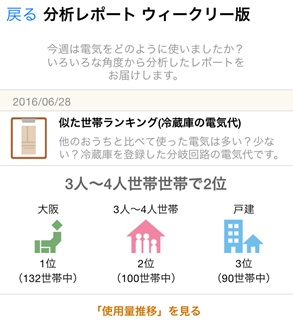電気使用量情報を分析したレポートを、週に1回火曜日にお届けします(その月の第2週目以降)。