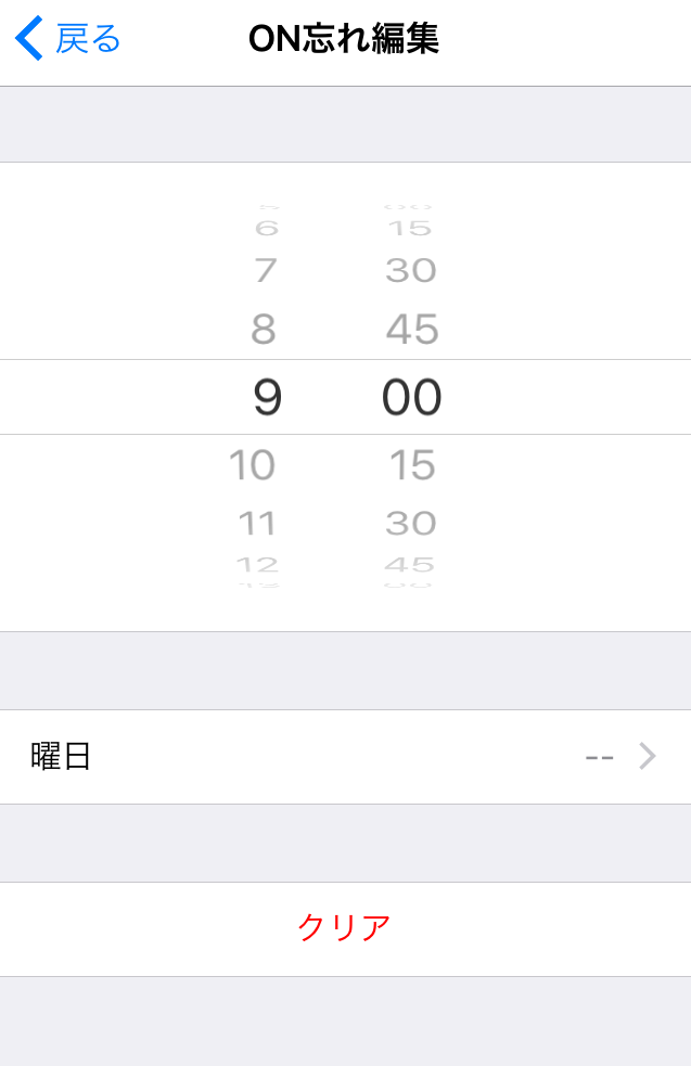 ※曜日選択画面は、iOSのみ表示されます。Androidでは、ON忘れ編集画面で選択することができます。