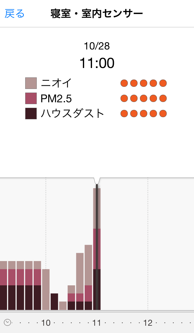 機器情報表示部分をタップすると、機器ごとの空気環境の推移グラフが表示されます。