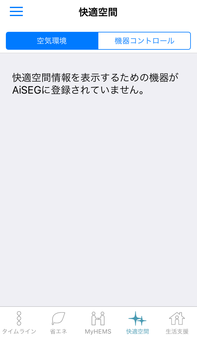 ※AiSEGに機器を登録していない場合、以下の画面が表示されます。