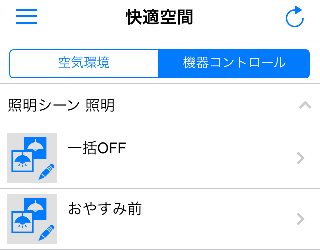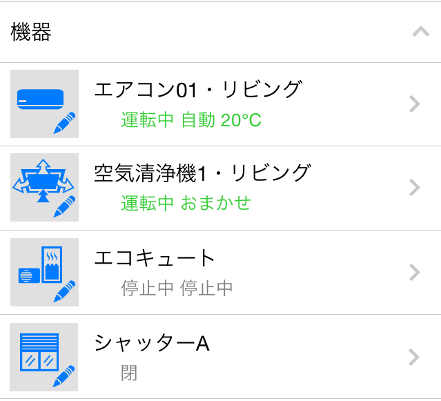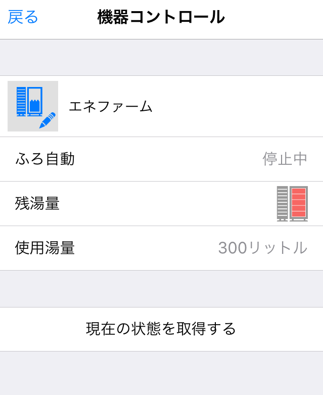 ボタンをタップすると、表示されている機器の状態を更新することができます。
