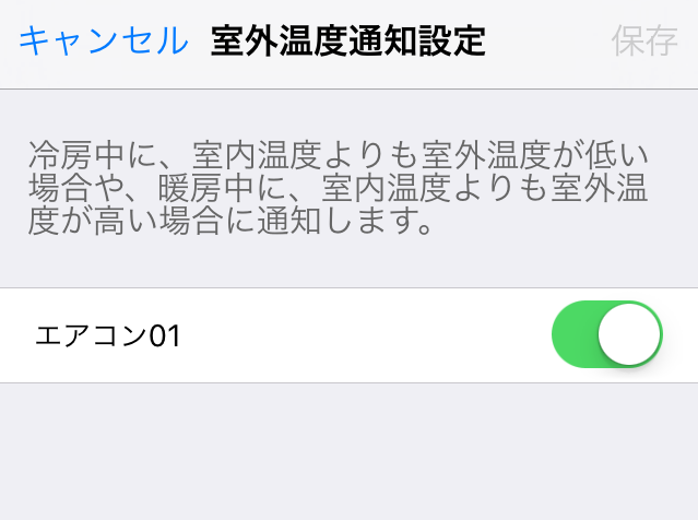 室内温度と室外気温を比較し、エアコンが無駄に動作している可能性がある場合に通知する設定を行います。