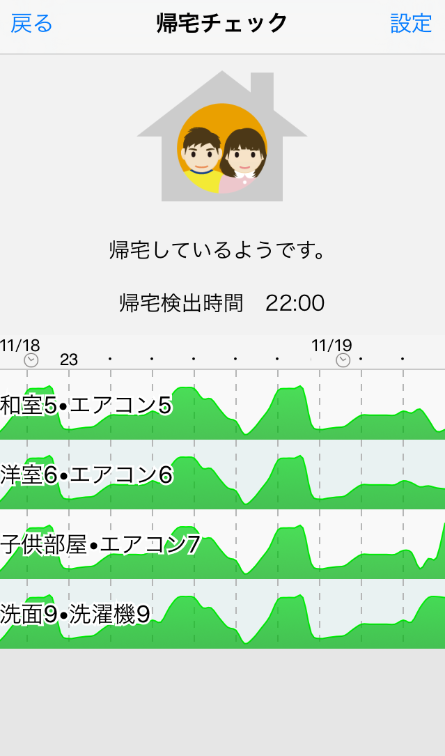 電気使用情報より、子どもの在宅状態を検出し、スマートフォンにプッシュ通知でお知らせします。