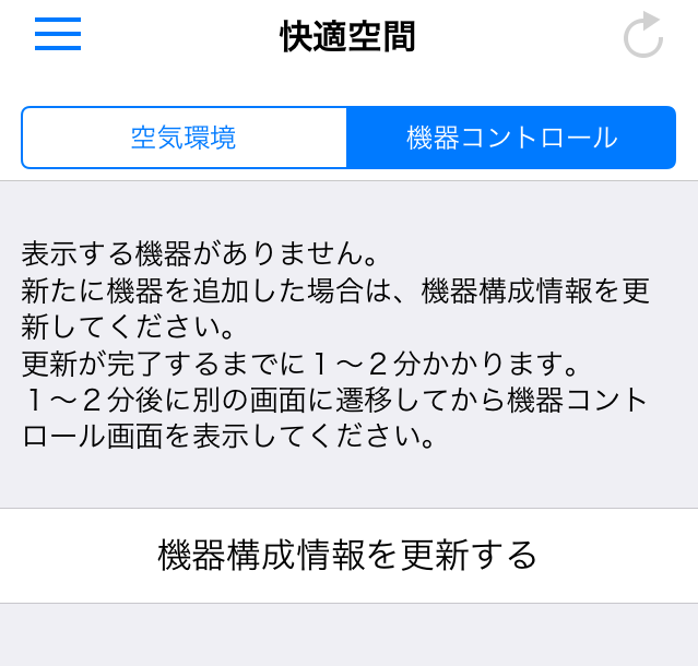 ボタンをタップすると、表示されている機器の状態を更新することができます。