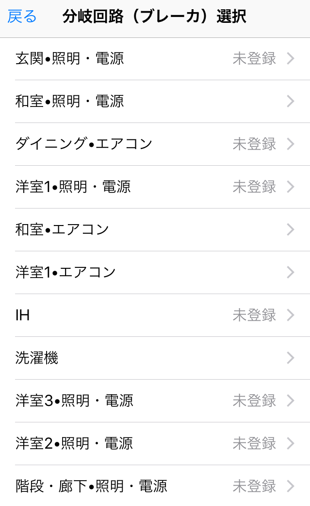最初に、見守るエアコンを分岐回路(ブレーカ)に登録します。