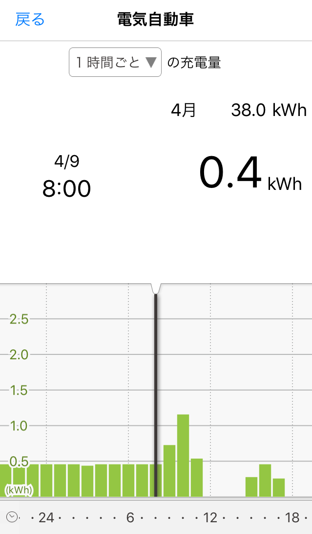 グラフ部分をフリックすることで、過去の充電量を見ることができます。