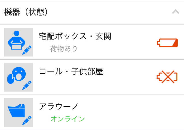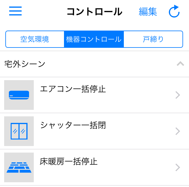 ボタンをタップすると、表示されている機器の状態を更新することができます。