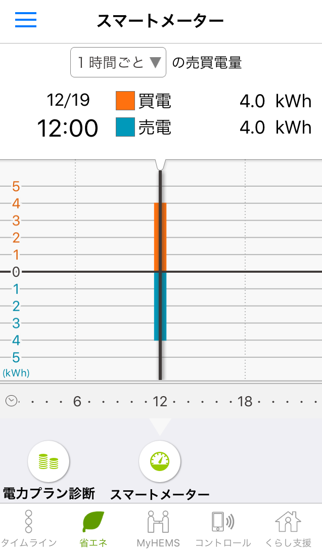※スマートメーターのみ登録時、省エネのトップ画面は、次の様になります。