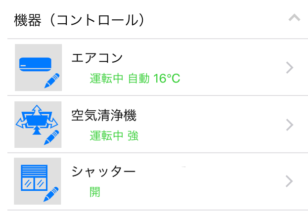 ボタンをタップすると、表示されている機器の状態を更新することができます。