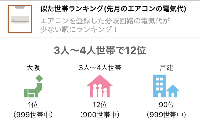 - 「似た世帯ランキング(先月のエアコンの電気代)」