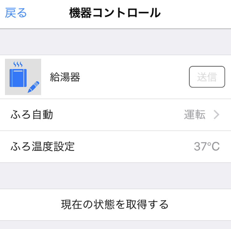 - 送信ボタンがタップ可能になるので、「送信」をタップすると、設定内容が給湯器に送信されます。