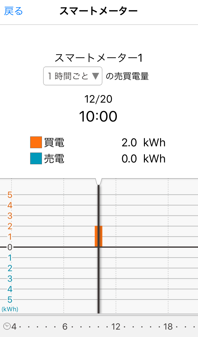 - 「1時間ごと ▼」の表示をタップして表示されるメニューから、1時間ごと、1日ごと、1ヵ月ごとの期間を設定できます。