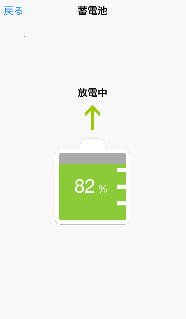 「省エネ」トップ画面にある「蓄電池」ボタンを選択すると、蓄電池の残量がパーセントで表示されます。