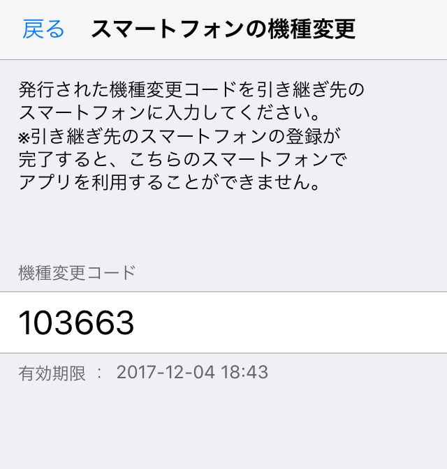 機種変更コードの有効期間は一週間です。表示されている有効期間中に、機種変更手続きをしてください。
