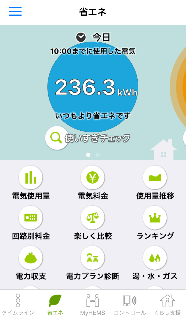 円の色(赤・黄・青)の識別で、節電状況が一目で分かります。