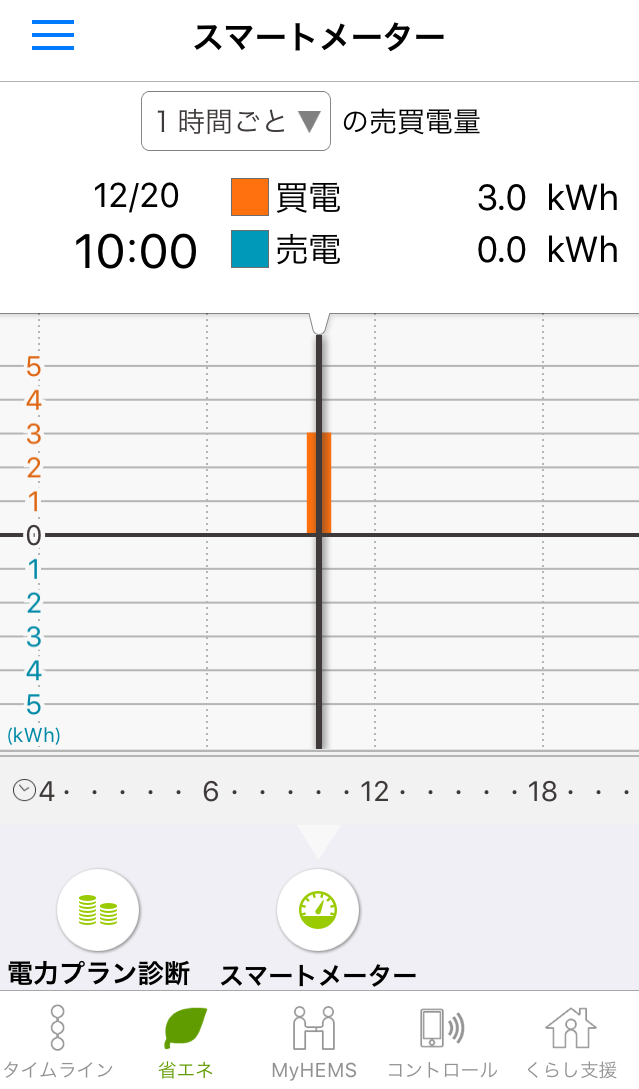 ※スマートメーターのみ登録時、省エネのトップ画面は、次の様になります。