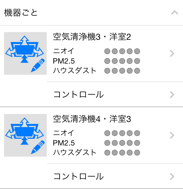 コントロールと表示された部分をタップすると、機器のコントロール画面になります。