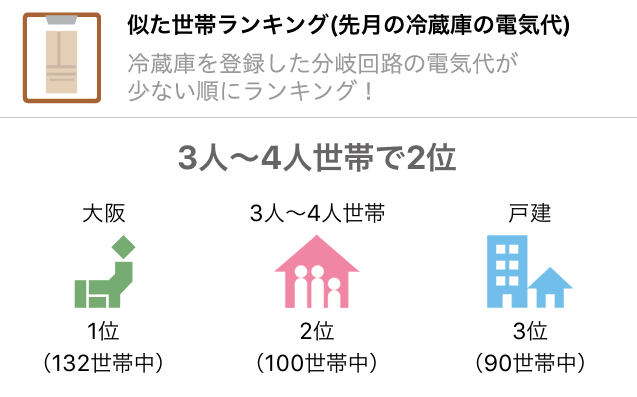 - 「似た世帯ランキング(先月の冷蔵庫の電気代)」