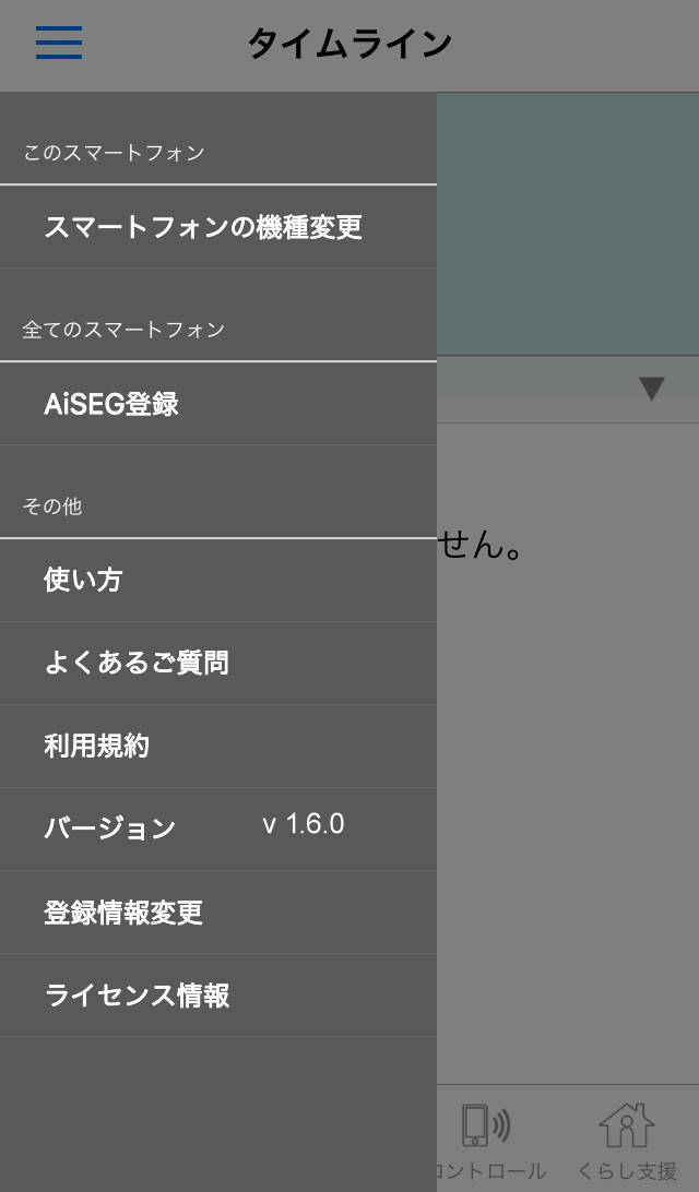メニューからAiSEG登録を選択し、利用規約に同意していただくと下記画面に遷移します。