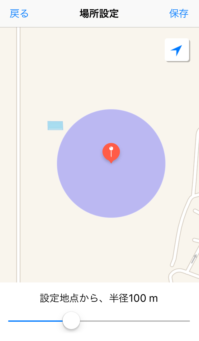 画面下部のスライダーをスライドさせると、設定地点からの半径を設定することができます。