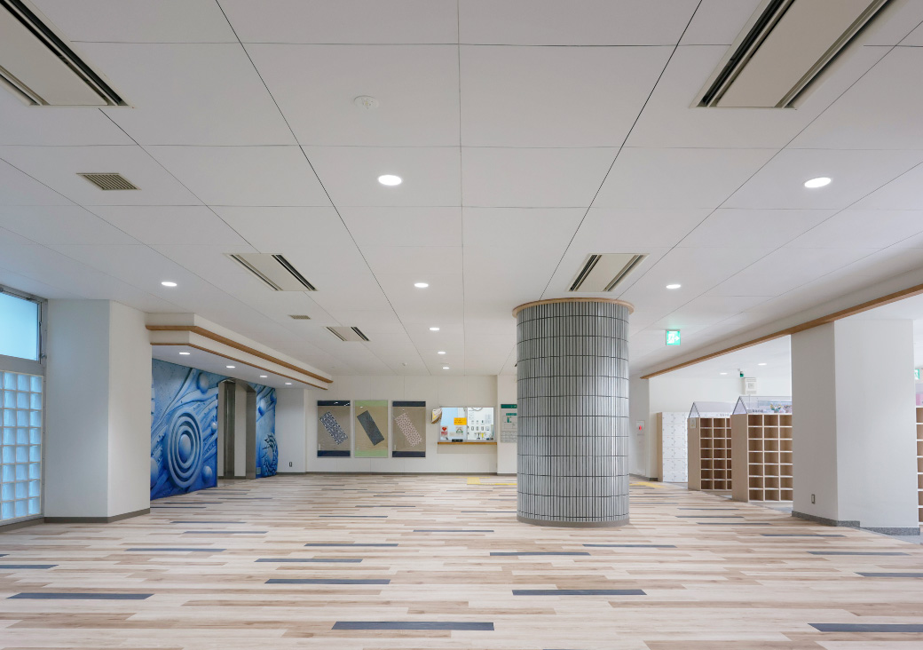 件 名: 品川区 中学校 納材時期 : 2021年7月 採用箇所 : 昇降口 採用面積 : 約300m2