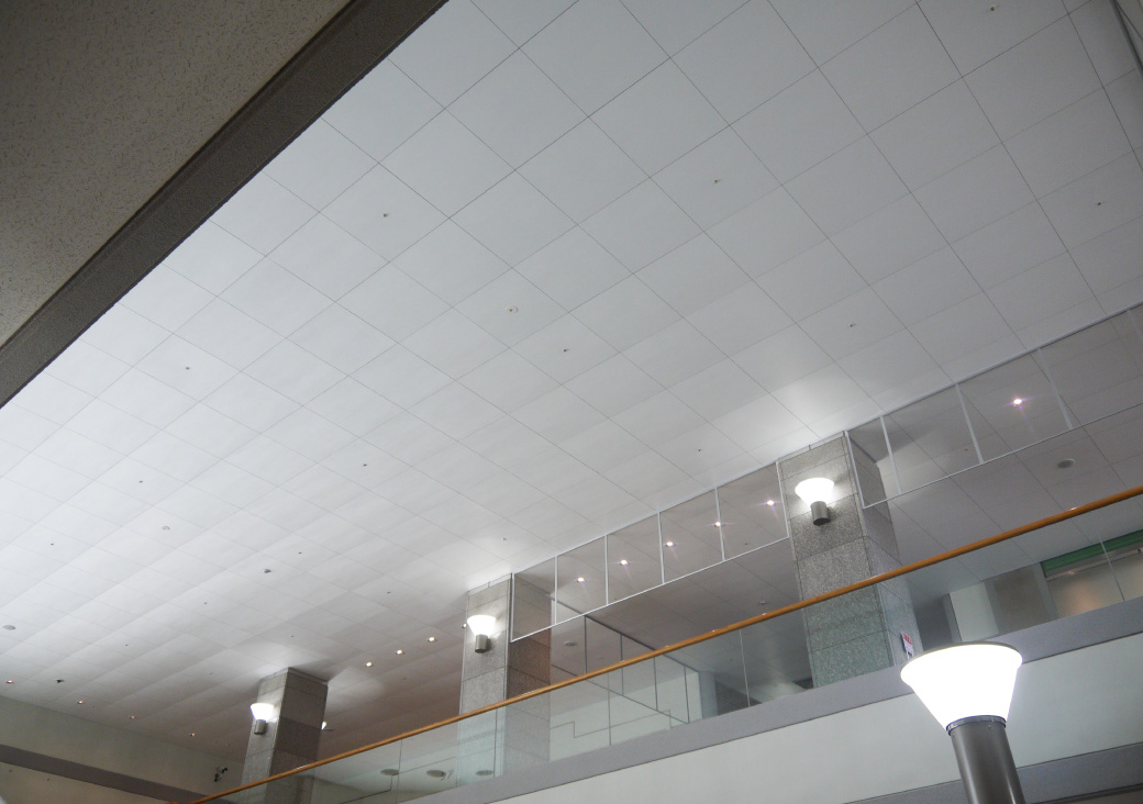 専用下地ではなく、一般の鋼製下地で施工が出来るため、特定天井で2キロ/m2以下に納める設計も楽に行えました。