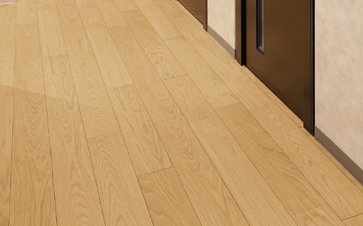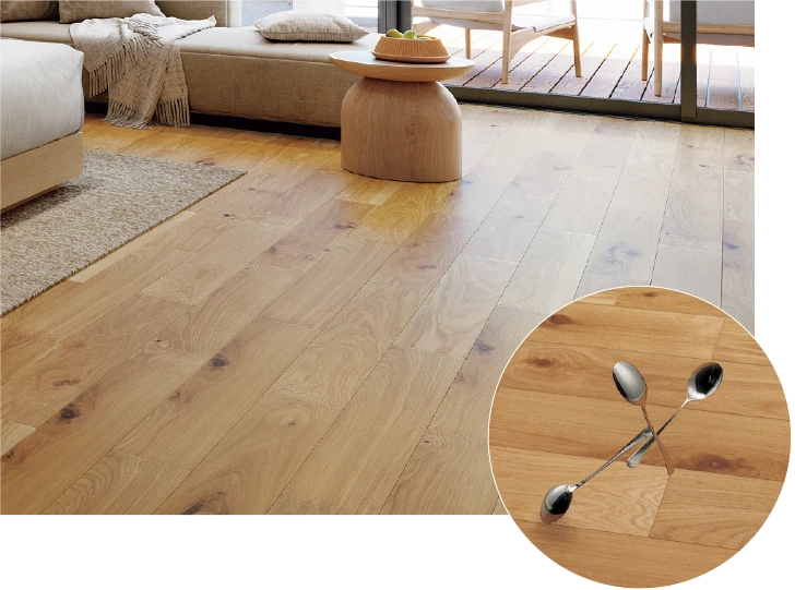 独自の3層塗装で、床表面を傷・汚れから保護。高い耐久性で、空間の美しさを維持。