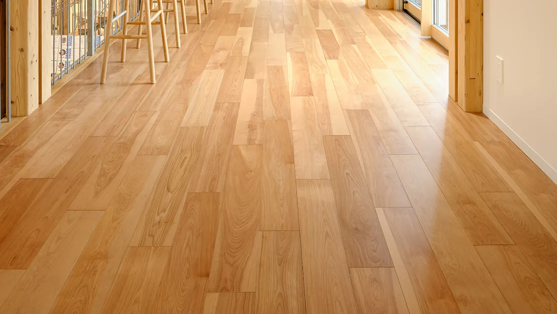 1階(左)は無垢フローリング材(メイプル)を、2階(右)はボアシスのクリアバーチを使用。天然木の空間としての統一感は保ちながら、それぞれの樹種の味わいを楽しめる。