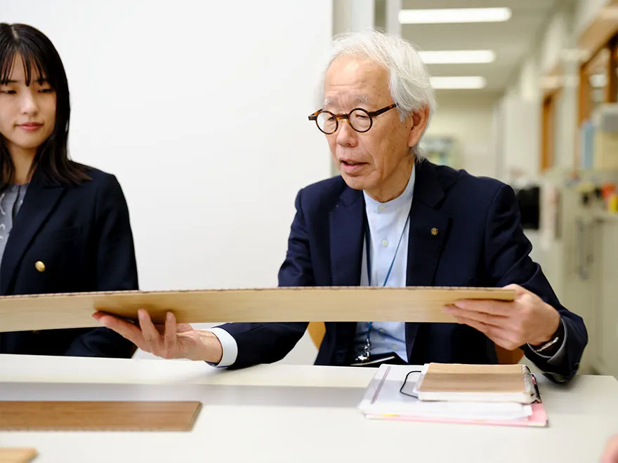 また、環境共生学部では現場での調査活動を大切にしています。フィールドワークに出ることも多く、土足で使用できることは必須。授業で木を削ったりすることもあるので、床材はメンテナンスのしやすさも重要でした。ボアシスなら土足でも使えますし、カーペットに比べて掃除もしやすいのではないでしょうか。