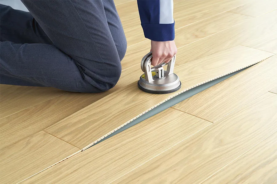 初めて使う商品だったので、他メーカーの商品サンプルなども取り寄せて比較しましたが、表面の安っぽさがなく、現場に取り寄せた際にも柄の出方の幅が広かったので、意匠性には納得。性能面では貼り剥がしのしやすさと反りにくさを両立する「さね形状」に魅力を感じました。当初は“こんなに小さくて大丈夫かな?”という感想だったのですが、パナソニックの営業担当者から説明を受ける中で、これまでの実績や商品開発の経緯の中で生まれた工夫なのだと理解し、使ってみようと思いました。