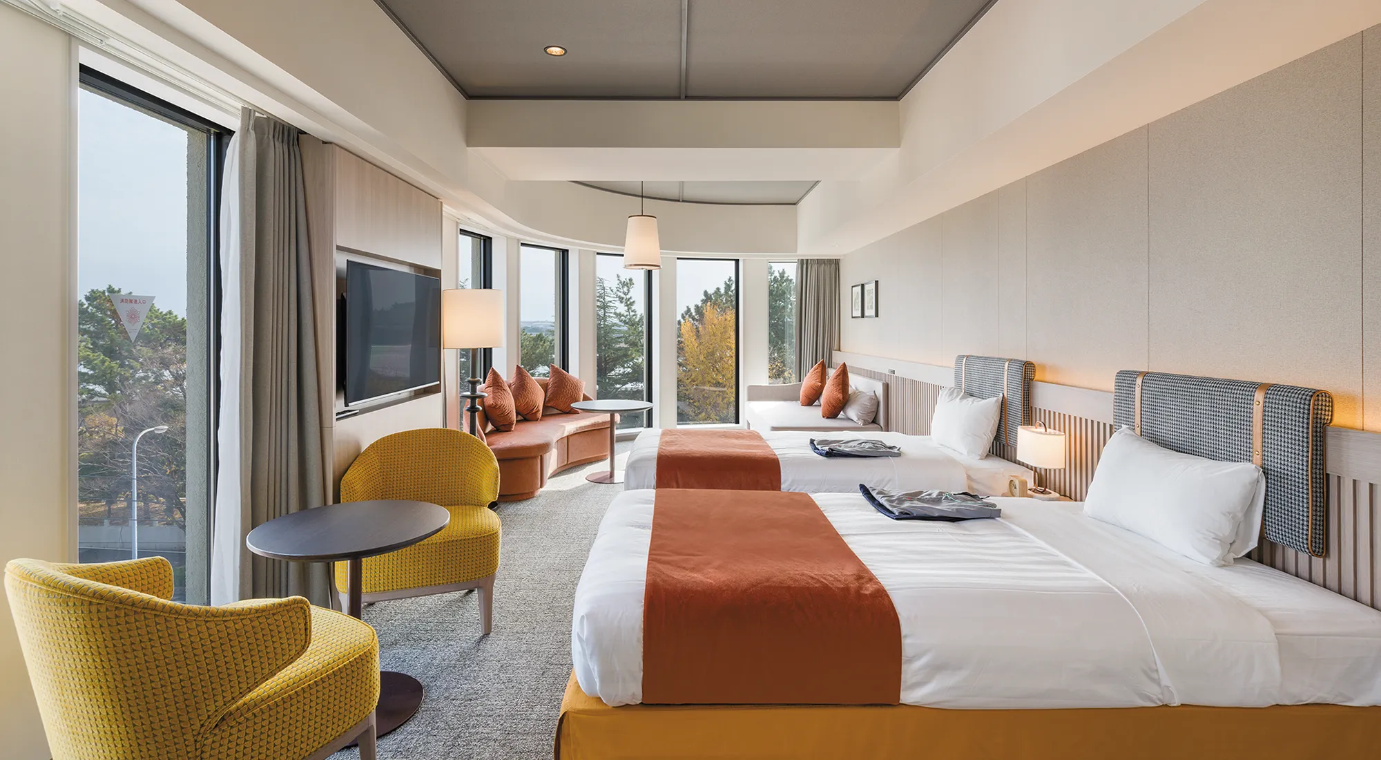 客室は30~50㎡超のゆとりある広さを確保し、モダンで明るいデザインでまとめた。周辺ホテルと比べお得感のある価格帯として、複数日の滞在をしやすくしている。