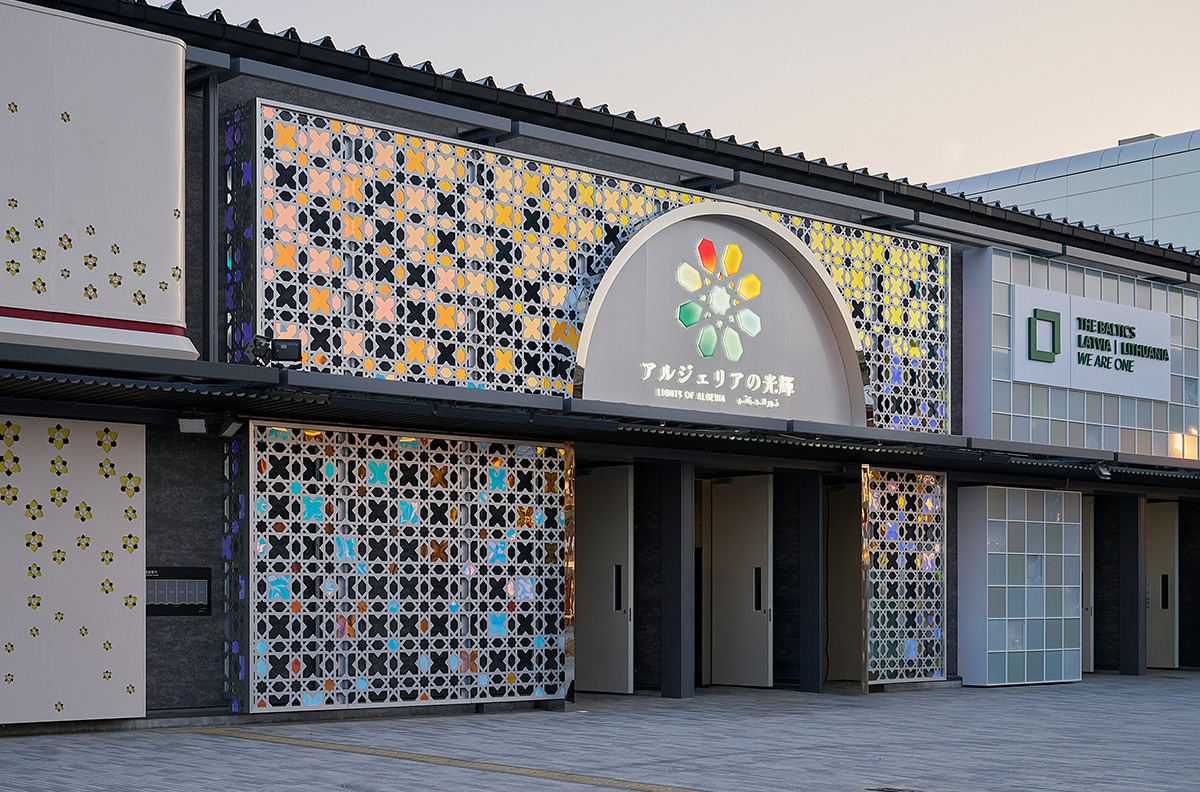 参加する国・地域、国際機関が日替わりで特別イベントを実施。飲食スペースなども備えた、大型の複合施設。