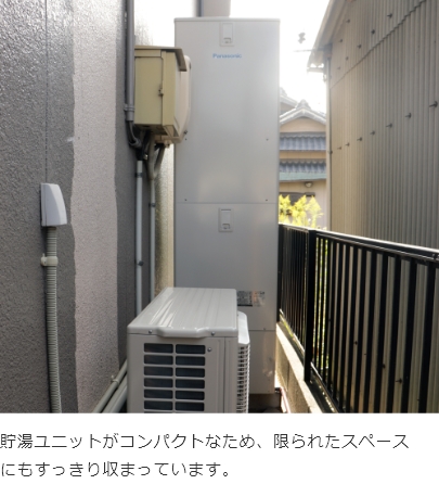 貯湯ユニットがコンパクトなため、限られたスペースにもすっきり収まっています。