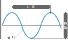 音は、一般的には、固体・液体・気体などを伝わる波と考えられ、「波長」「振幅」「波形」で表します。音の大小は「振幅」、高低は「波長」、音色は「波形」で決まります。