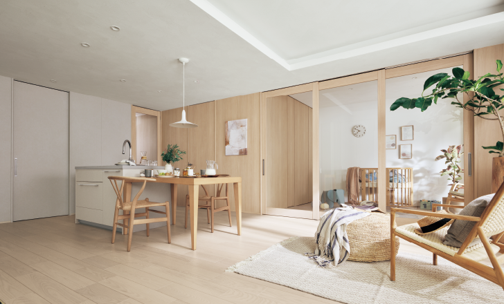 上枠が見えない仕上げで、空間がつながります