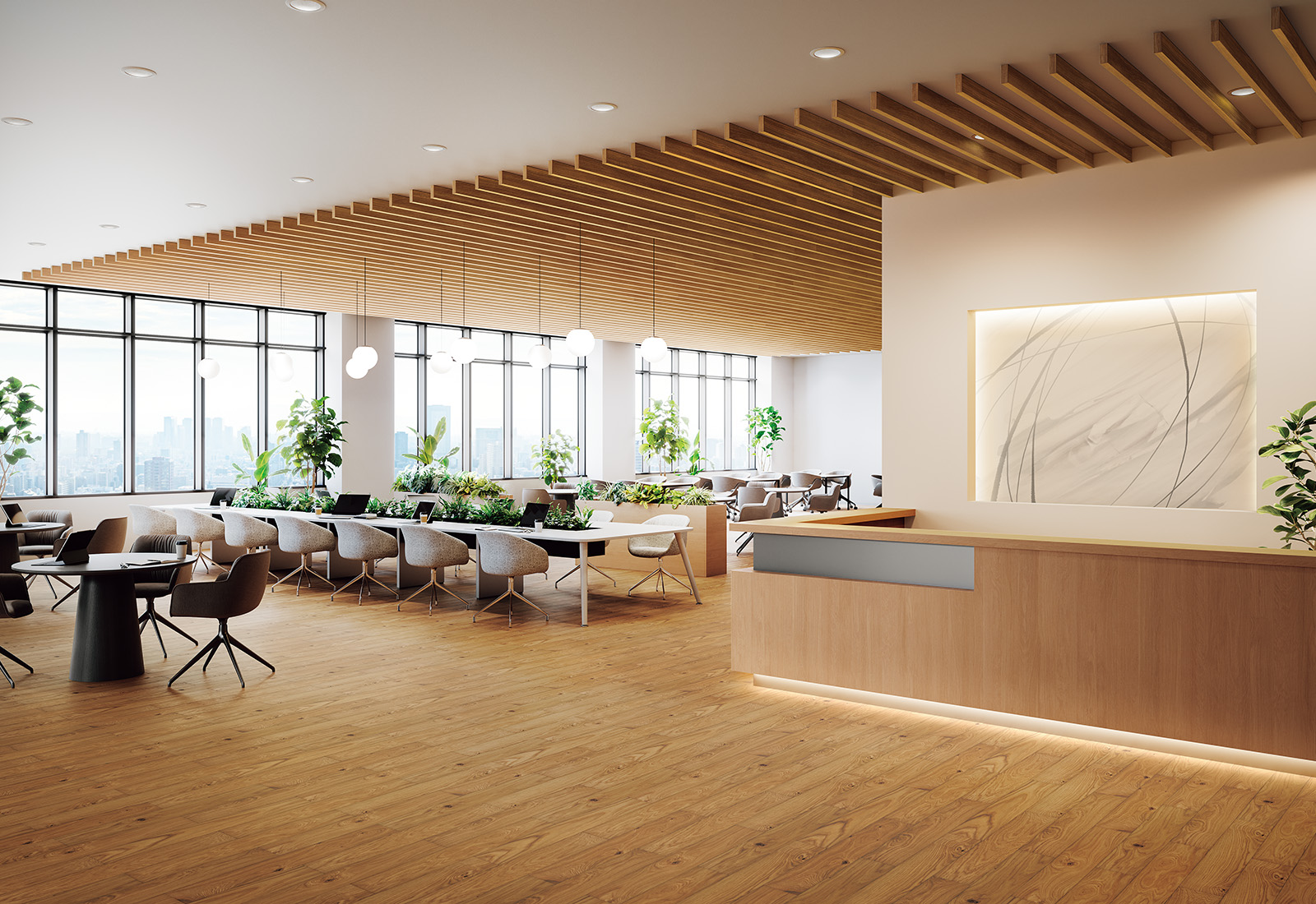 「天然木の表現」で、自然感のある上質な空間を演出。