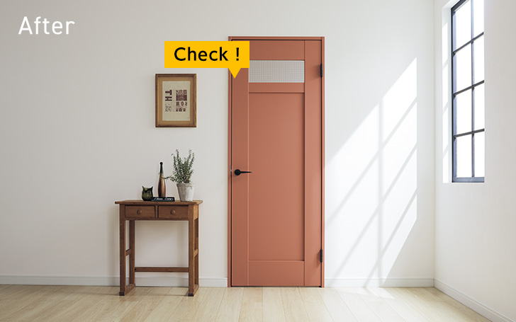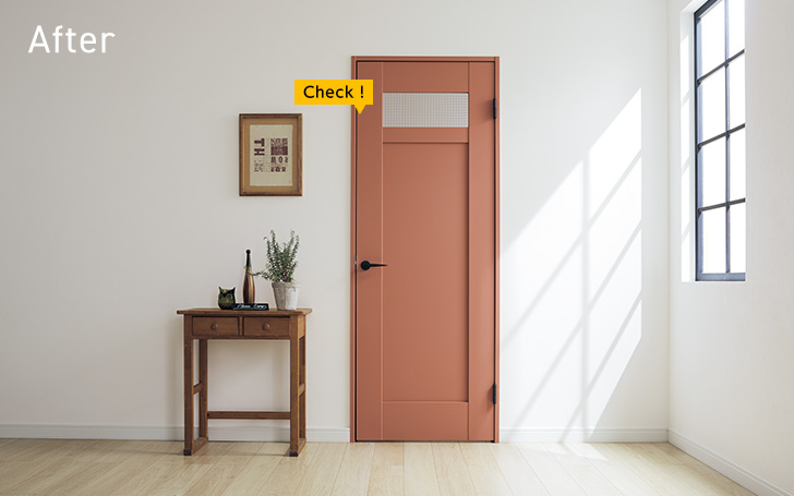 ドアが変わるだけで、空間の印象はガラッと変わります。お気に入りの色を選ぶのもいいですが、さらにこだわるなら自分で塗装するという手も。個性的な空間になることはもちろん、自分で塗ることで愛着が湧き、一層思い入れのあるお部屋になります。