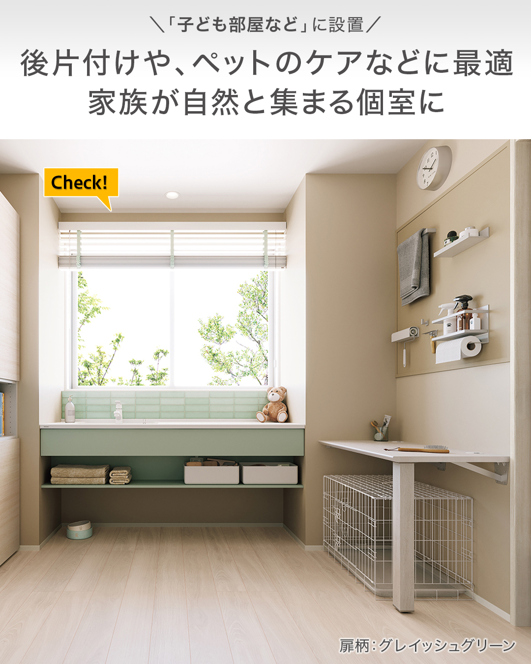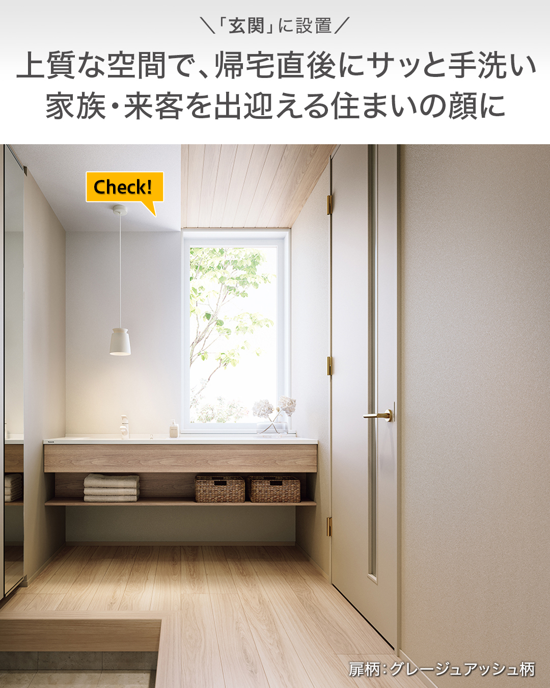 さらに、全18柄のラインアップでキッチンや建具との統一感あるコーディネイトが可能。設置する場所にも馴染む、使っているときもそうでないときも快適な洗面ドレッシングを実現できます。