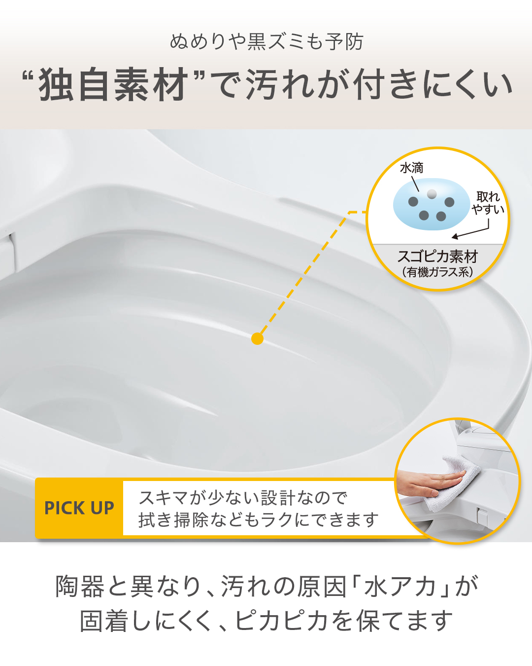 特に大掃除の際は便器内の掃除に加え、床や壁など空間全体のお掃除も必要。常日頃から汚れがつきにくく、清潔さが維持できるトイレだと嬉しいですよね。