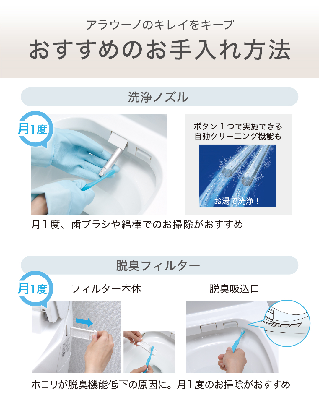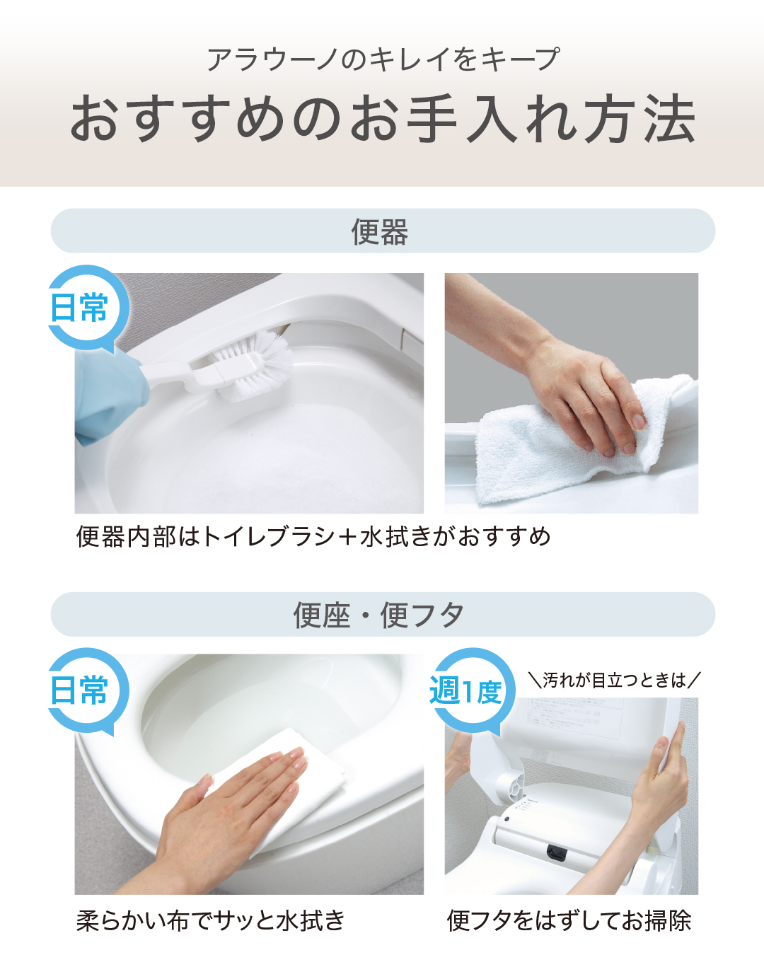 今回は、日常のお手入れについても詳しくご紹介。アラウーノをすでにご採用されているという方もぜひチェックしてみてくださいね。