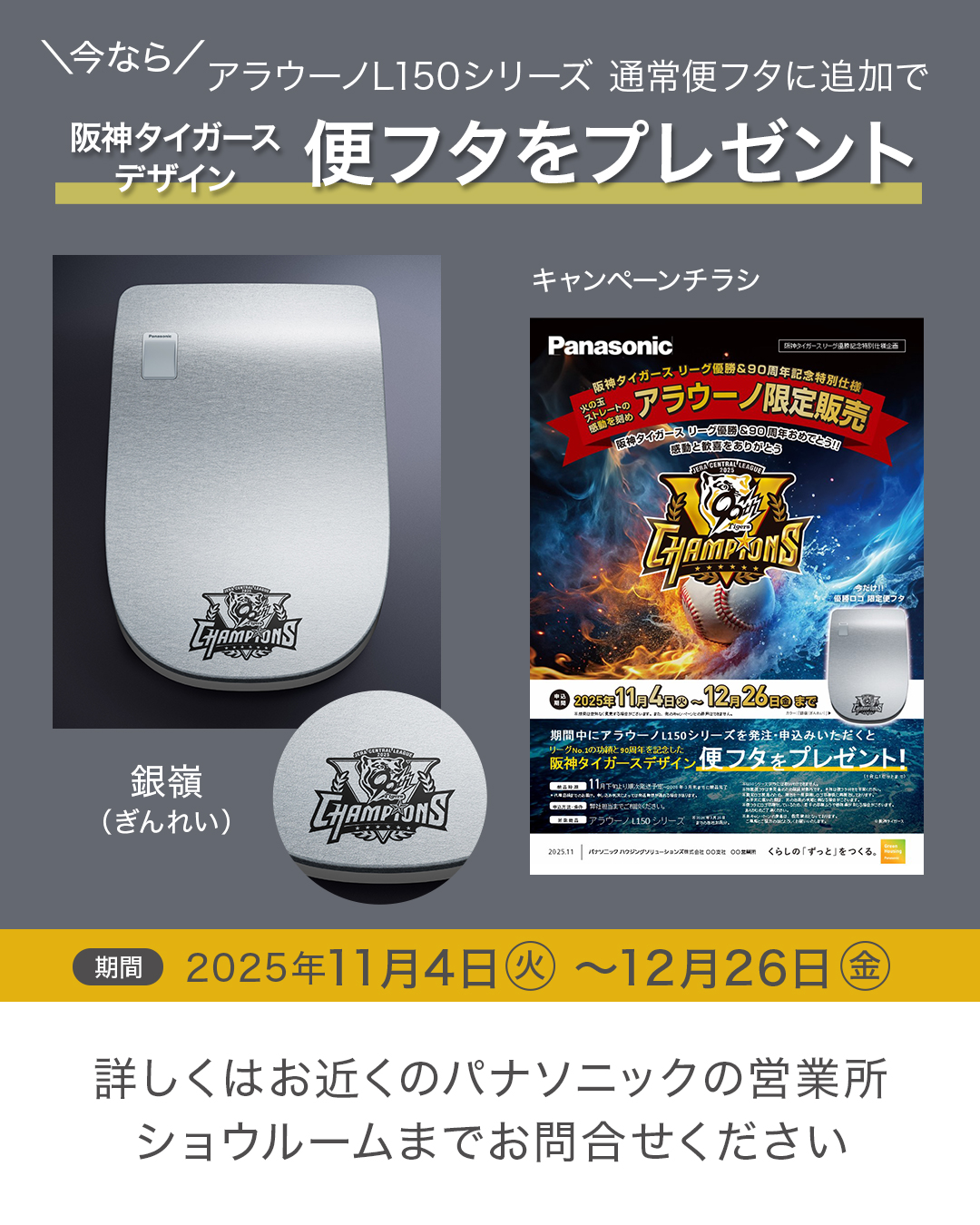 さらに今なら、豊富な便フタカラーで空間を彩ることができる「#アラウーノL150 」に、阪神タイガースとのコラボレーションデザインが登場中。リーグ優勝と90周年を記念した特別仕様です。この機会をお見逃しなく!