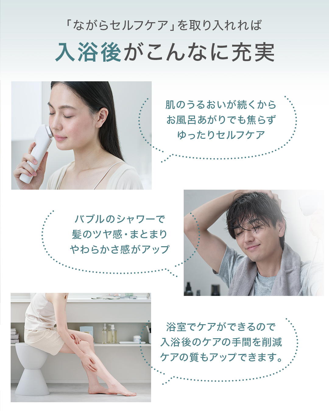 \いつもの入浴で、髪美しく、肌うるおう/