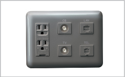 キュビオスのユニットカラーに合わせて、グレーのコンセントも特別仕様で生産しています。