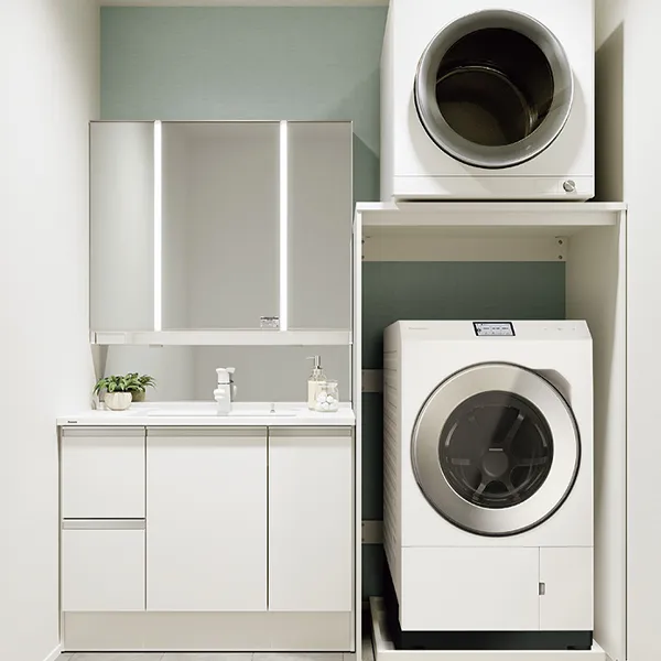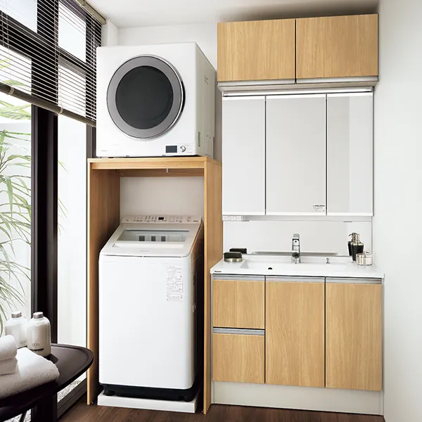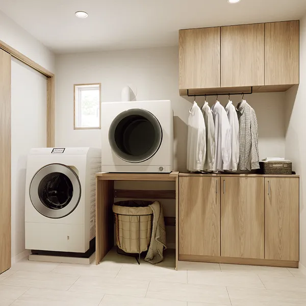 ガス衣類乾燥機 乾太くん※専用の収納台で省スペースで家事効率を高めた空間が作れます。