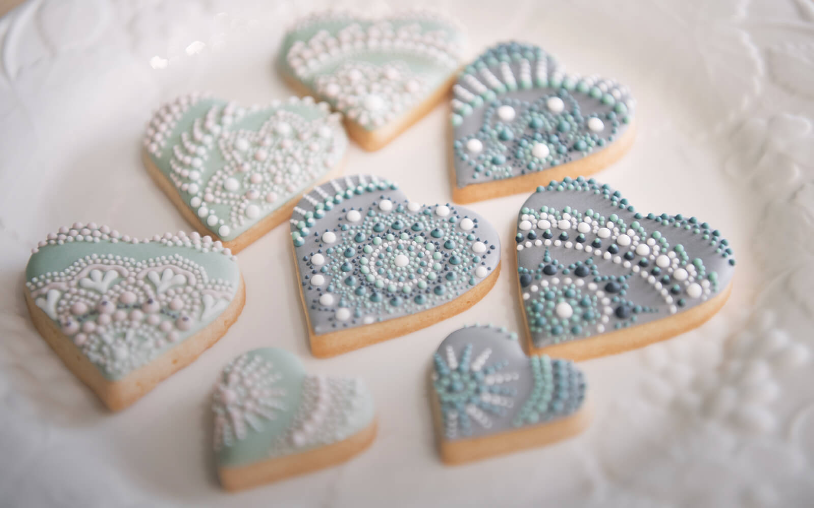 そんな想いをベースに打ち合わせを重ねる中で、タブチさんが目を光らせたのが、加奈絵さんがつくる繊細な幾何学模様のアイシングクッキーだった。