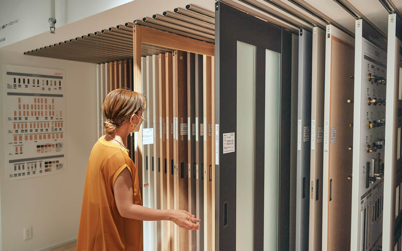 アドバイザー「具体的なものをいきなり選ぶのは難しいと思うので、まずはイメージを固めていけるとよいかと。ドアに対して、統一感をもたせるか、メリハリをつけるか、どちらが好みですか?」