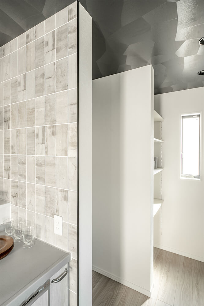 広瀬: そうですね。キッチンのタイルを起点にモノトーンを配置していきました。床はタイルの冷たさを軽減できるように、やわらかい印象のグレージュヒッコリー柄に。キッチンの扉はペイントウッド柄に。