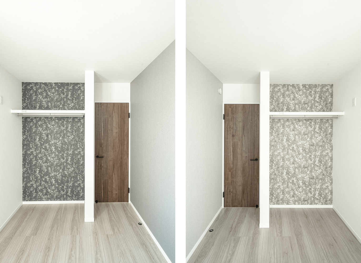 居室のある3階は子ども部屋などもあるので、モダンな印象を和らげるためにウォールナット柄にしました。濃い色柄なのでコントラストはありながらも、木目が親しみやすい印象を与えてくれます。